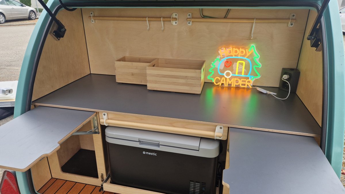Avec une batterie intégrée de 80Ah et un panneau solaire de 100W, "Pénélope II" la Teardrop est autonome en électricité pendant 24/48 heures selon votre consommation (et selon la météo bien sûr).
