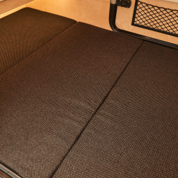 La cabine peut accueillir confortablement deux adultes, et pas seulement pour dormir : le matelas 3 pièces est pliable en canapé, les prises de courant sont toutes en place, vous pouvez donc organiser une excellente soirée si vous préférez rester à l'intérieur.