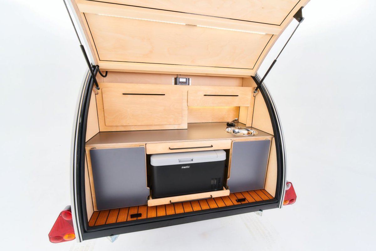 Avec une batterie intégrée de 90Ah et un panneau solaire de 100W, "Calliope" la Teardrop est autonome en électricité pendant 24/48 heures selon votre consommation (et selon la météo bien sûr).