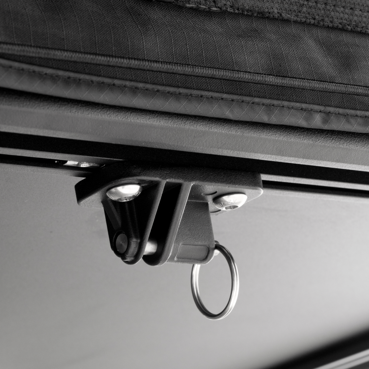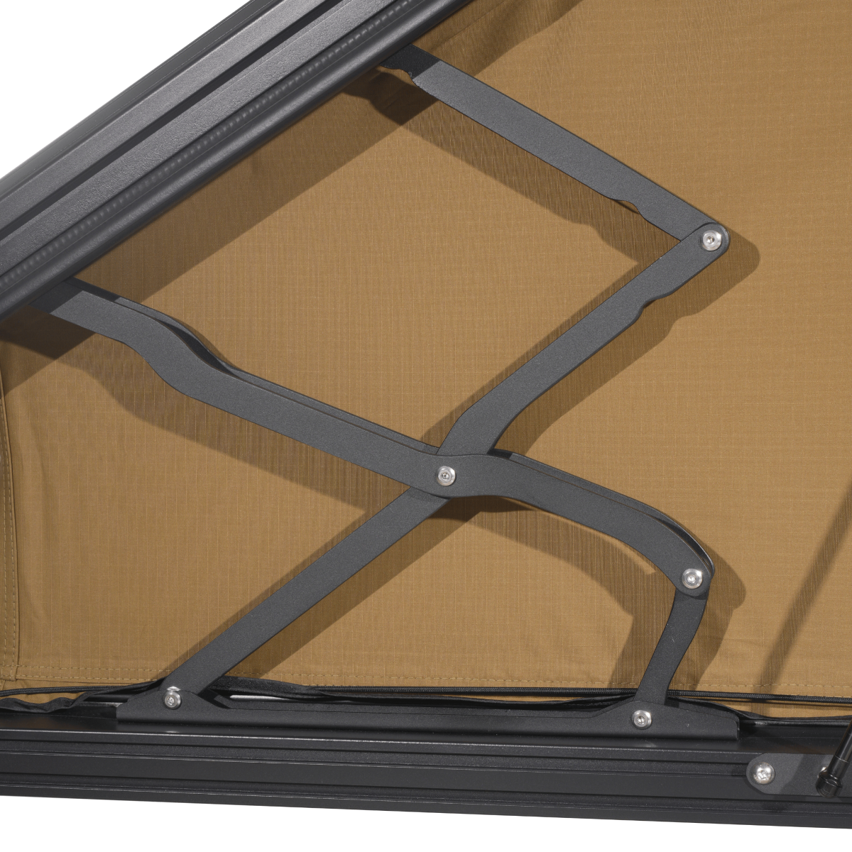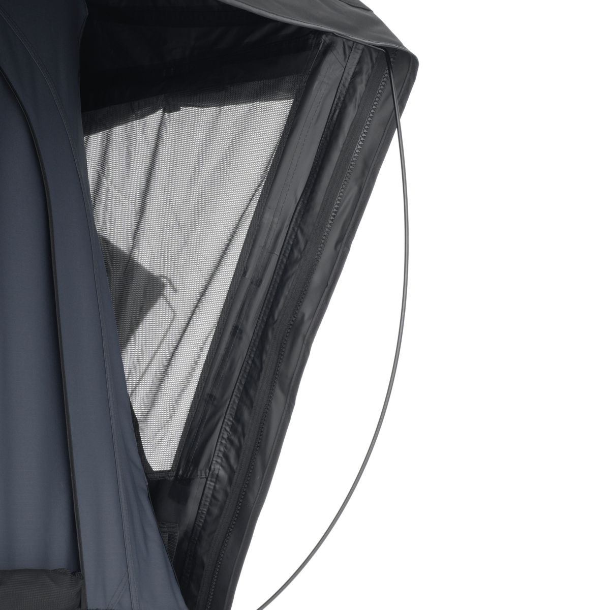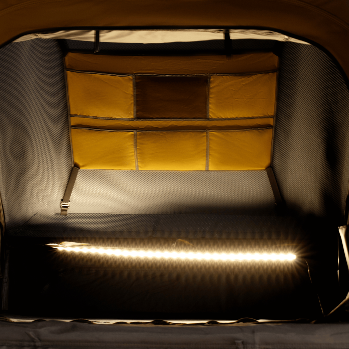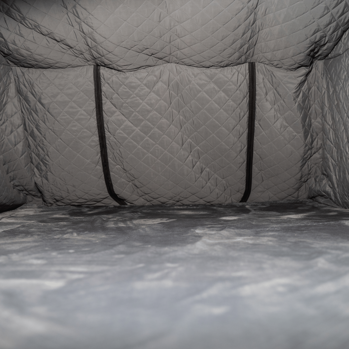 La Cervina 145 s’ouvre comme une tente de toit rigide classique de type “triangle”, avec une mise en place rapide et intuitive. Mais elle va plus loin : sa paroi arrière peut s’ouvrir pour offrir un espace supplémentaire, idéal pour dégager la zone des pieds ou de la tête. Ce système ingénieux améliore le confort intérieur sans compromettre la solidité ou la simplicité d’installation.