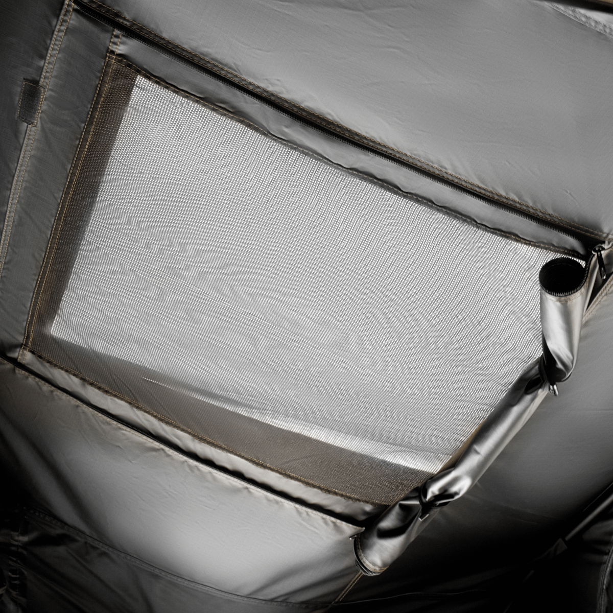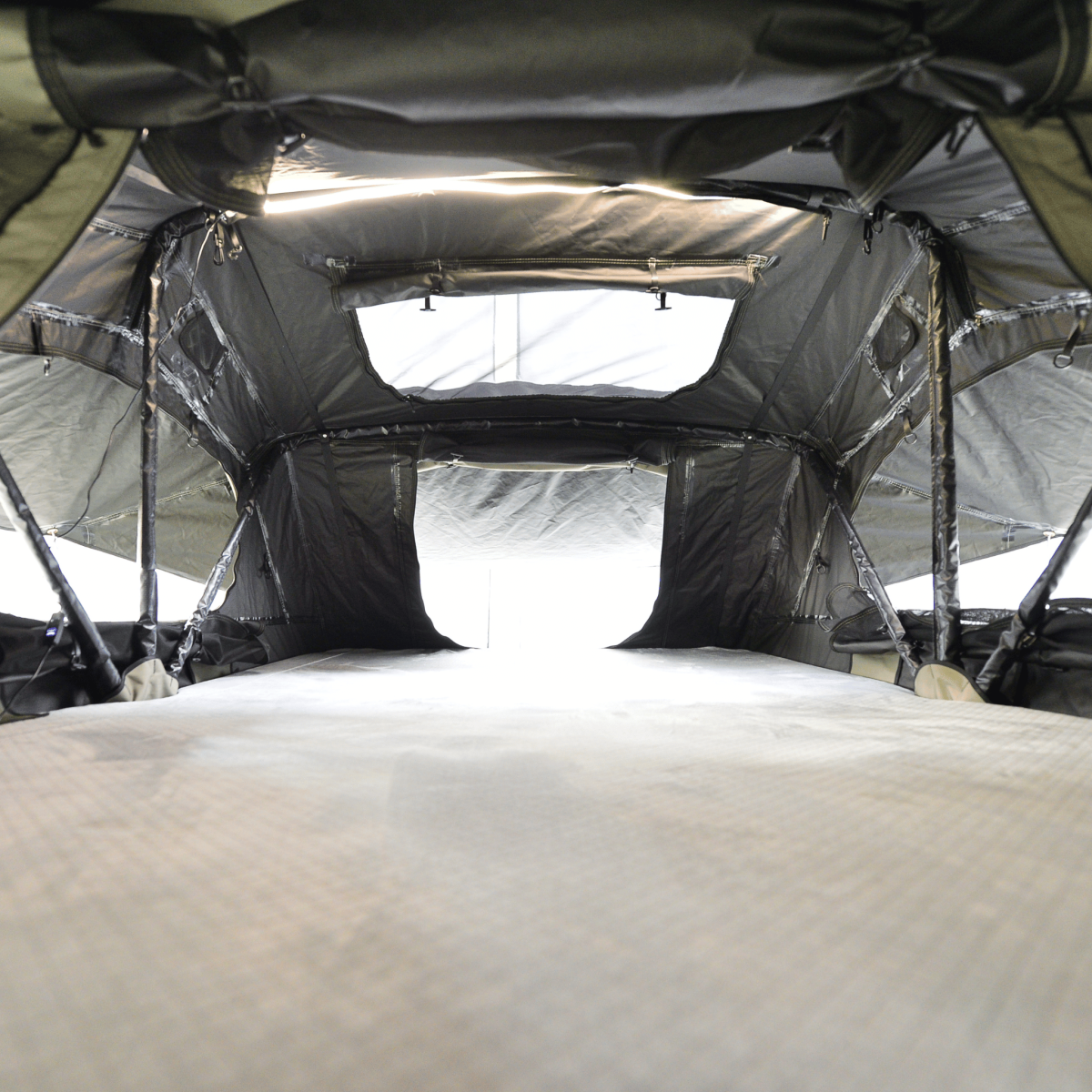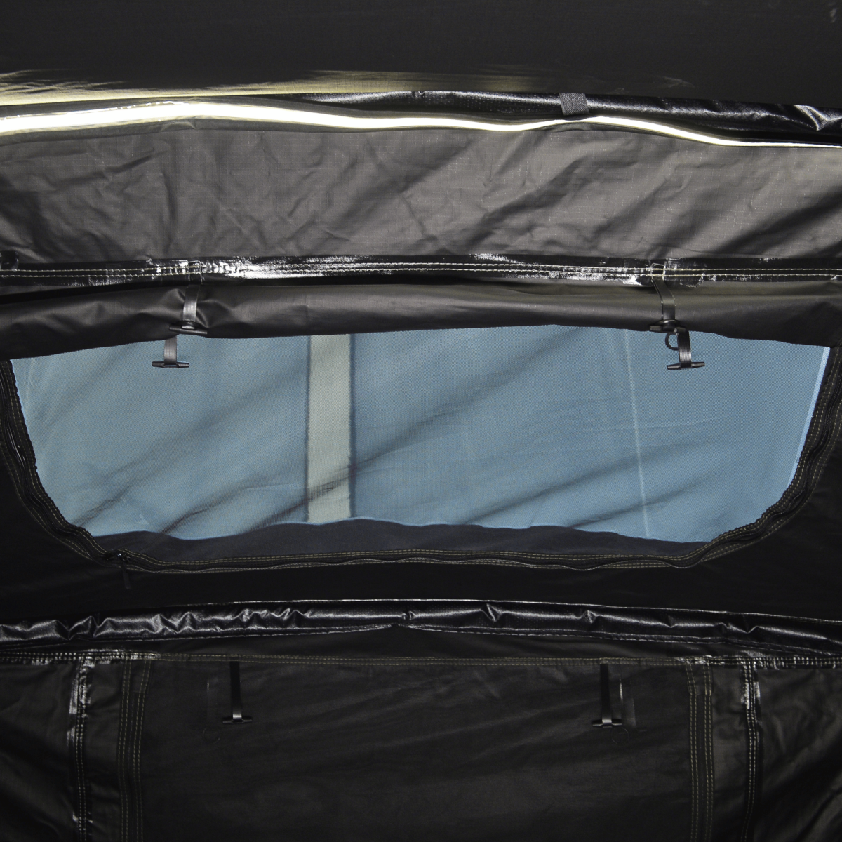 - Prise en charge du confort thermique : Toutes nos tentes de toit sont équipées d’un orifice spécialement conçu pour permettre l’installation d’un tuyau de chauffage ou de climatisation.