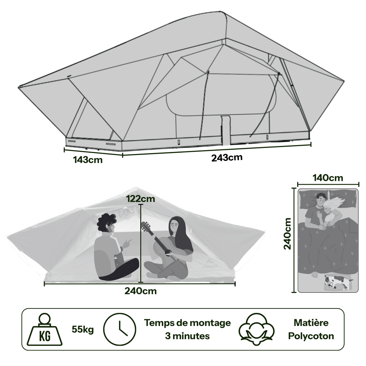 - Montage rapide : idéale pour partir à l’aventure sans perdre de temps.