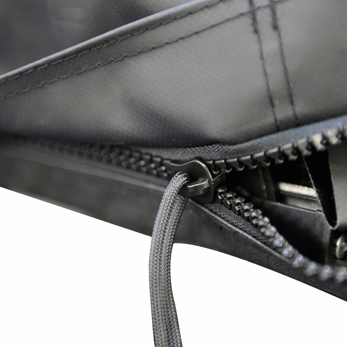 - Protection anti-intempérie : Polyester Oxford 600D en rip-stop diamant, revêtement PU, étanchéité de 5’000 mm, protection UV50+, couleur noire